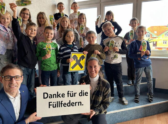 Dank der großzügigen Unterstützung der Raiffeisenbank Pyhra konnte der Elternverein die Kinder der zweiten Klassen mit personalisierten Füllfedern überraschen. Die Kinder haben sich sehr gefreut, jetzt macht das Schreiben noch mehr Spaß!