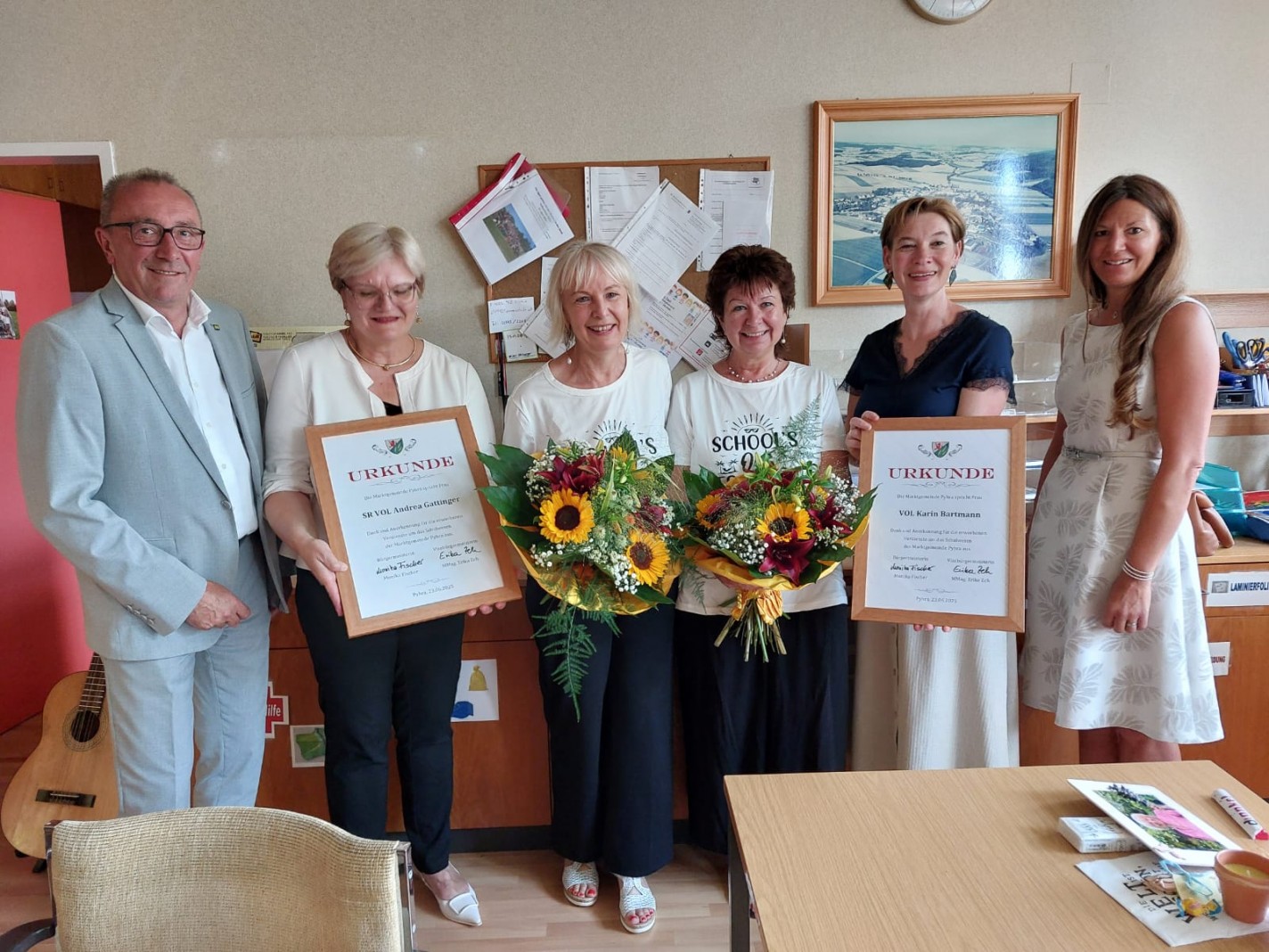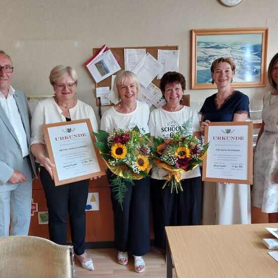 Am letzten Schultag verabschiedeten sich unsere zwei lieben Kolleginnen Andrea Gattinger und Karin Bartmann in ein Jahr Sabbatical und in den anschließenden wohlverdienten Ruhestand. Die Gemeinde und unser Team ehrte sie für ihre jahrelange, großartige Arbeit die mit viel Herz und guten Nerven verbunden war.