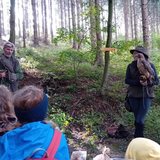 Mit den Jägern durften wir einen Vormittag im Wald verbringen. An verschiedenen Stationen wurde uns die Jägersprache, das besondere an Jagdhunden, die Pflege von Wald und Wild oder interessante Dinge über heimische Greifvögel näher gebracht.