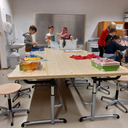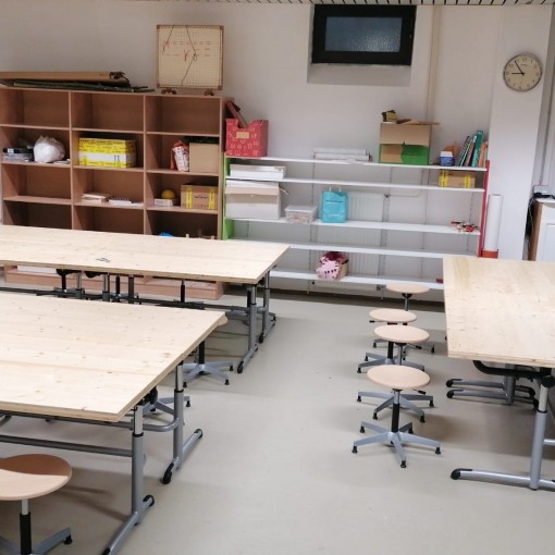 Neue Tische für unseren Werkraum, nun sind sie endlich da! Jetzt haben wir genug Platz und die Ausstattung an Tischen, die wir für einen entspannten Werkunterricht dringend brauchen.